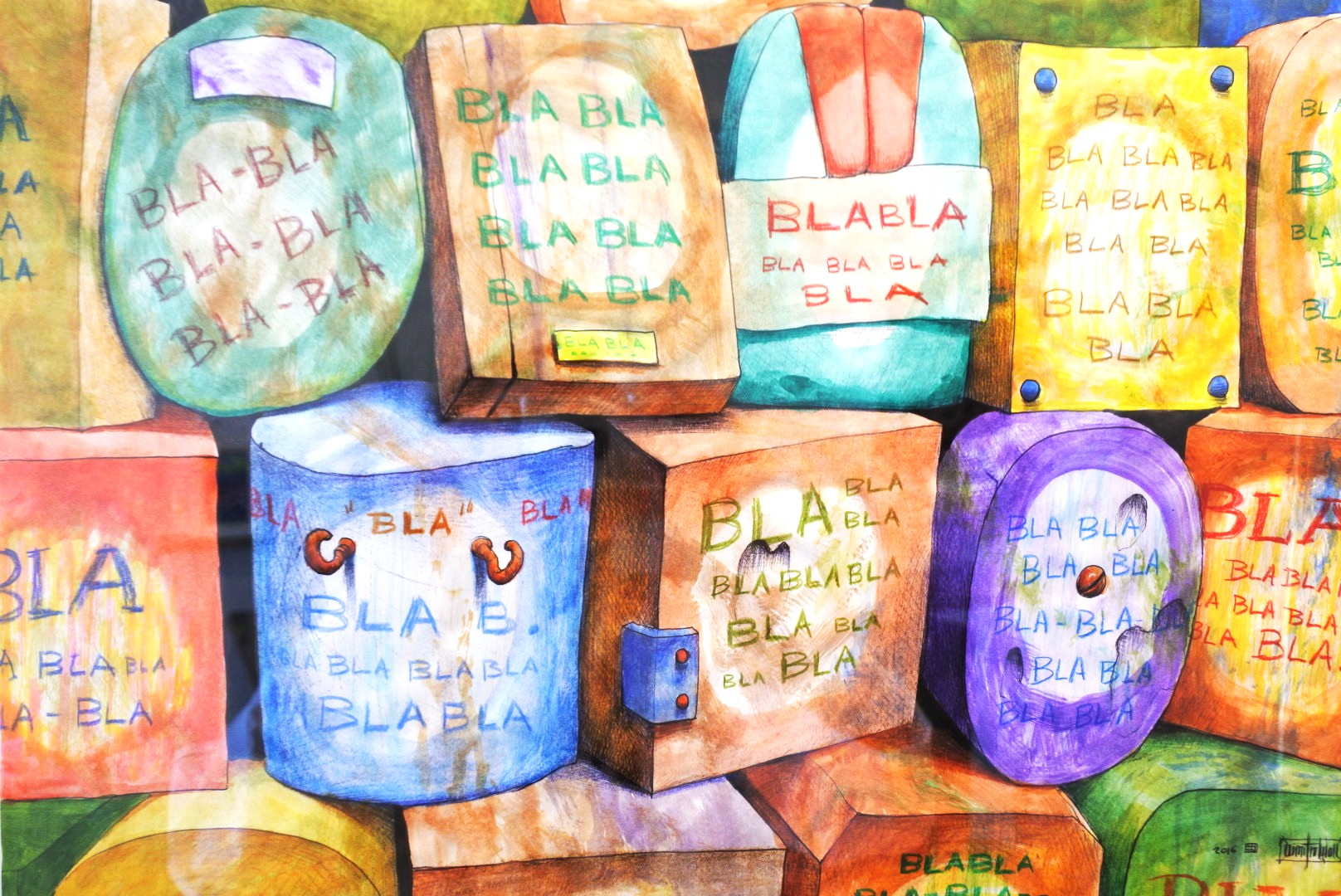 Weicher und sanfter wirken dagegen seine Collagen und Zeichnungen. Aufgrund der anderen Technik sind diese Werke impulsiver und geben mehr vom Künstler preis. Die Ergebnisse entstehen stärker aus dem Moment heraus. Oft sind diese Kunstwerke mit eingearbeiteten Fotos oder Gedichten verbunden.